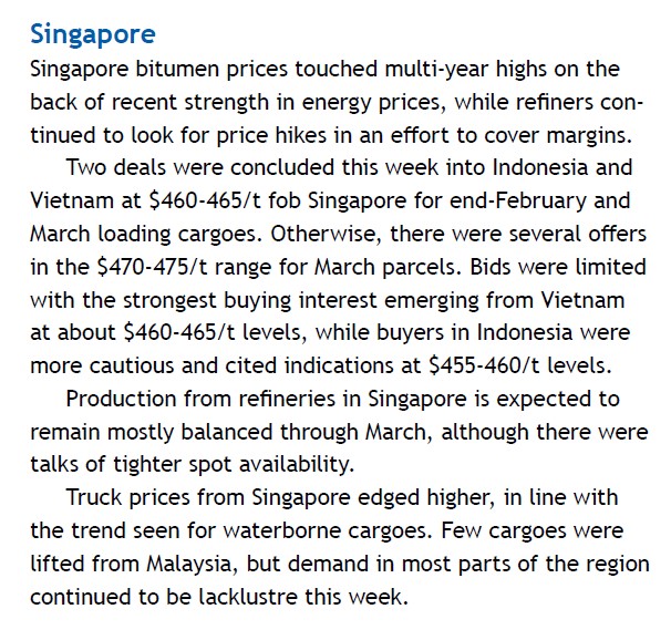 Singapore Bitumen Market